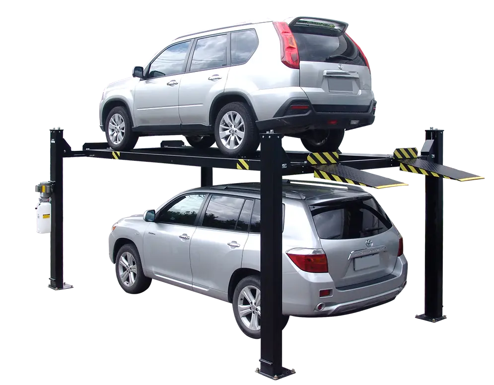 Save space in the garage with heavy duty, store-and-stack, 4-post Tuxedo and Titan Lifts for your prized collectibles